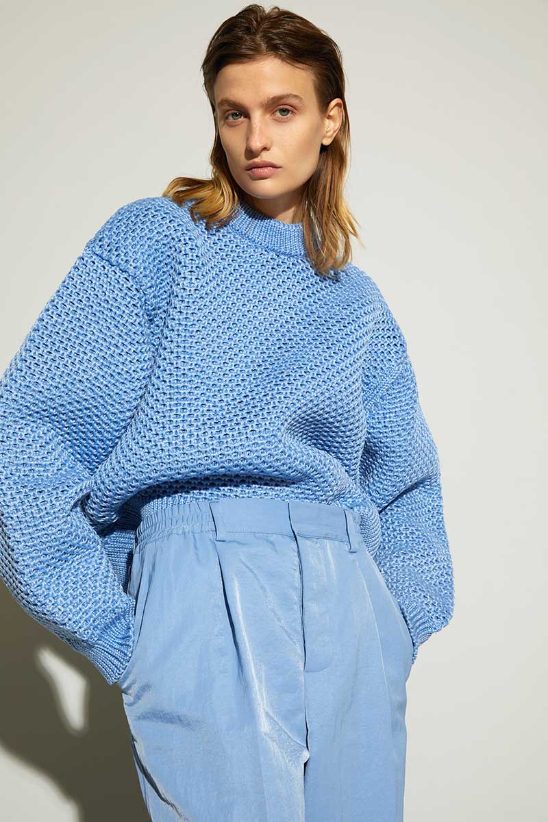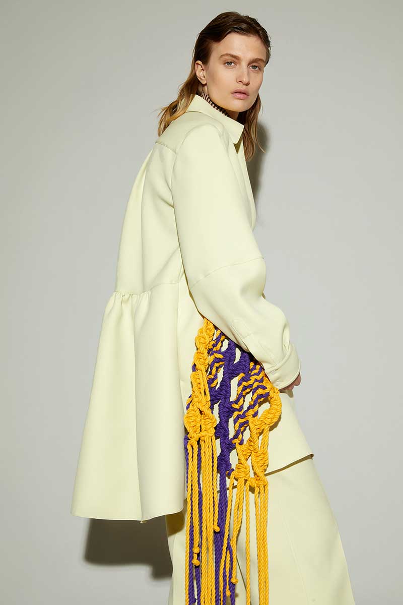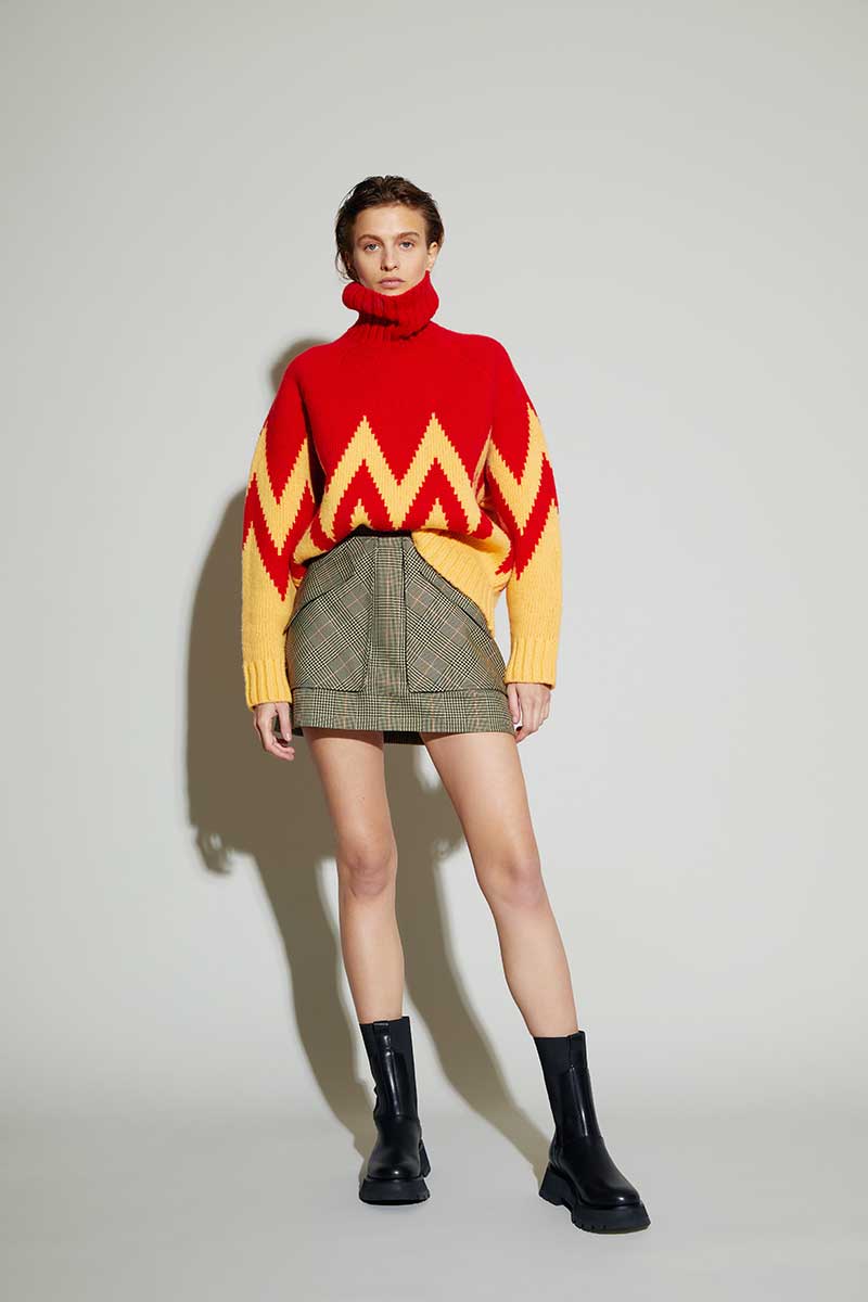https://aknvas.com/The fall winter 2021 AKNVAS collection is created from a lens, which is looking at a world, in which we are all seeking comfort and safety. Creative Director Christian Juul Nielsen’s inspiration journey took him to revisit his roots while living in Paris and Copenhagen. The results are couture-inspired corset details, mixed with comfortable oversized sweatshirts, and square shapes of LEGO-inspired geometric patterns and zig zags. We are in a world where everything is becoming more and more contrasted, so the idea of playing with silhouettes and shapes is fascinating. Body conscious ribbed dresses placed against oversized coats is a respite from daily life in a world of lockdown and social distancing. We wish for couture but have an ethereal need for comfort. The collection features an extended knitwear collection, including: body conscious strappy tops, nylon ribbon knitted sweaters, oversized cropped woolen cable knit sweaters and tight little neon pink cashmere tops. Keywords for the collection include: unisex silhouettes mixed with super masculine and ultra feminine detailing, drawstrings, corsets, Japanese nylons, pajamas stripes and covered buttons.Founder and Creative Director : CHRISTIAN JUUL NIELSEN Model : VERONIKA VILIM Lookbook Photographer : MARC RICHARD TOUSIGNANT Video Director and Art Director : CYRIL GUYOT Film Director of photography : GEOFFREY TAYLOR Hair and Make-up : CECILIA ROMERO Press relations: AGENTRY PR