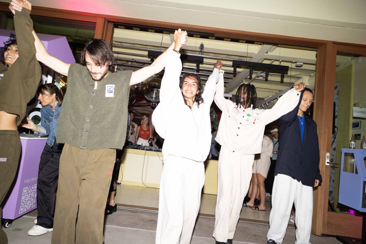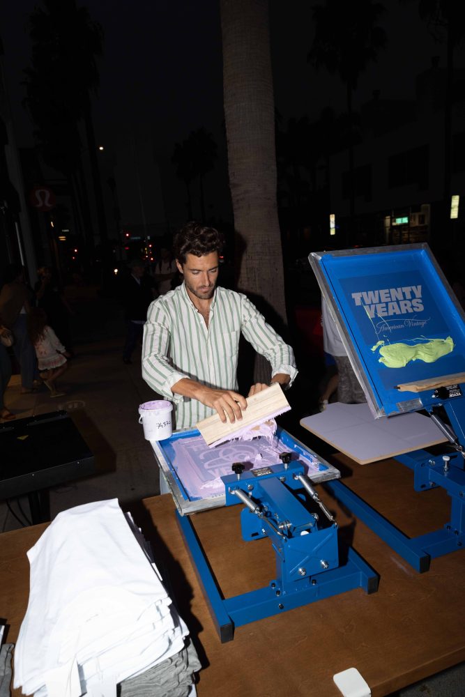 AMV’s messaging goes beyond fit models performing a front-side-back rotation. For decades, the brand has communicated its authenticity through its editorials, emphasizing wearability by photographing real people going about their real lives. Taking this application one step further, the brand’s 20 year capsule collection debuted via dance troupe, exhibiting bold emblazoning across gently colored crew necks and the evident movability of their branded ecru denim. Onlookers sipped cocktails provided by LALO Tequila and Copalli Rum, and nibbled on the culinary manifestation of American Vintage’s international DNA: bites from bratwurst to poke were supplied by Create Hospitality. Twee & Izy spun tracks nightlong, fueling a festive reverie for LA’s style set. Influencer Rocky Barnes rubbed shoulders with Love Island’s Eyal Booker, all arriving to support this milestone for their favorite closet staple.