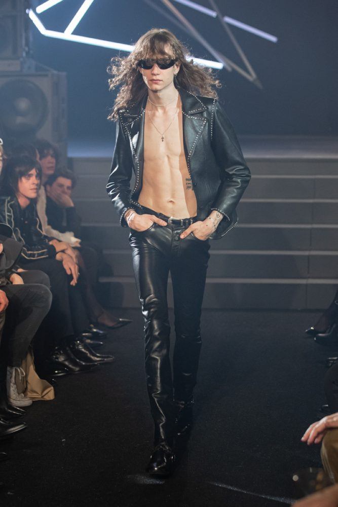 Hedi Slimane delves into today’s youth’s rediscovery of the 2000’s electroclash and electronic rock sounds and scenes, a movement appearing in major cities like Paris, London and New York. He pays tribute to new york’s cult proto-punk band suicide formed in 1977 by alan vega and martin rev, a band that in 2023 still intrigues and inspires the emerging music scenes.