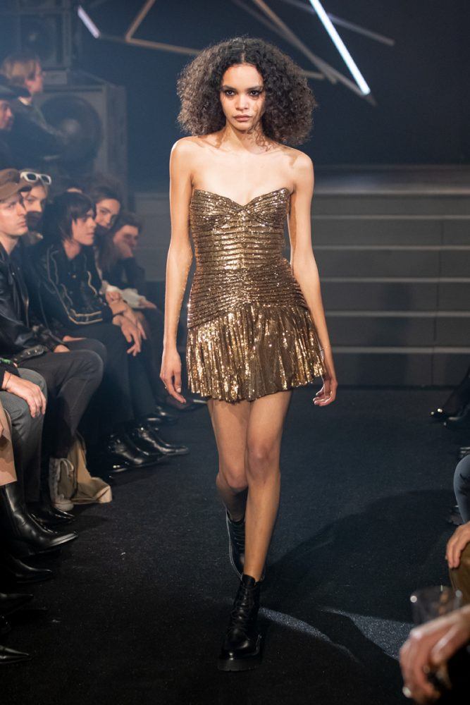 The models wear “nightclubbing” perfume, part of the Celine Haute Parfumerie collection. The pieces that pay tribute to Le Palace’s iconic years are limited edition.