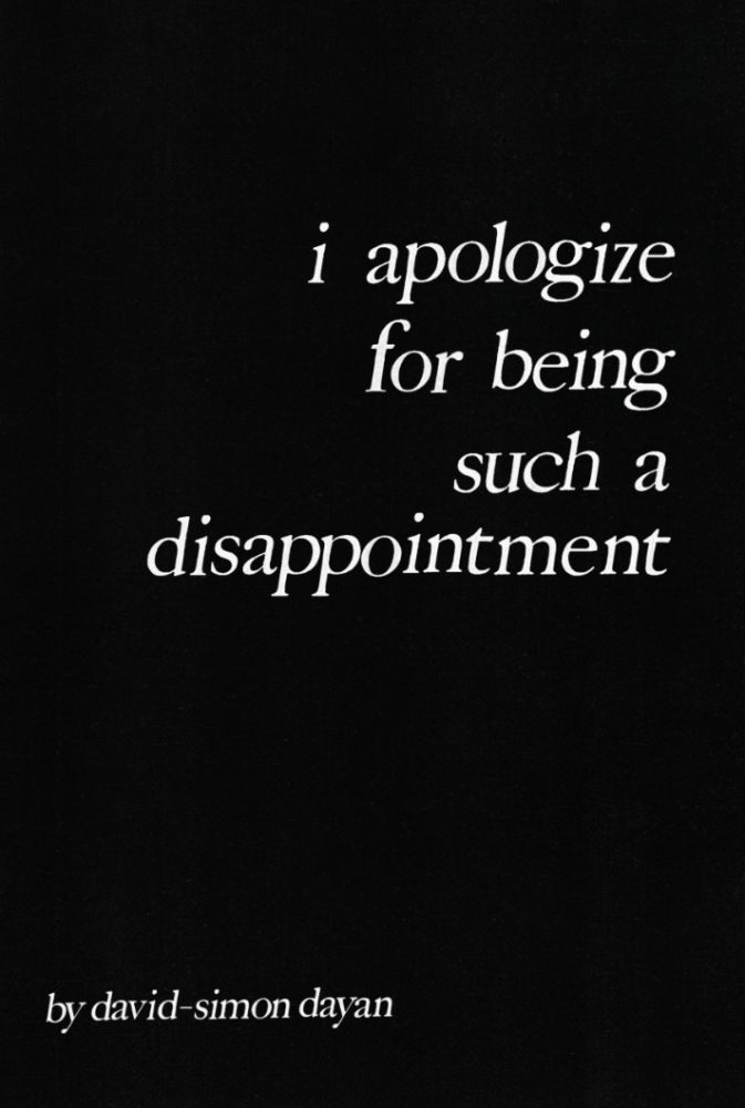 In his debut chapbook, “i apologize for being such a disappointment,” the photographer and poet David-Simon Dayan turns his gaze inward, reflecting on his struggles with self-love, masculinity and vanity. Within these poems, a tangible sense of both intimacy and yearning pervades, allowing insight into his battles with expectations being raised as a man, loving another man, losing love from another man, and trying to find love for oneself as a queer person.