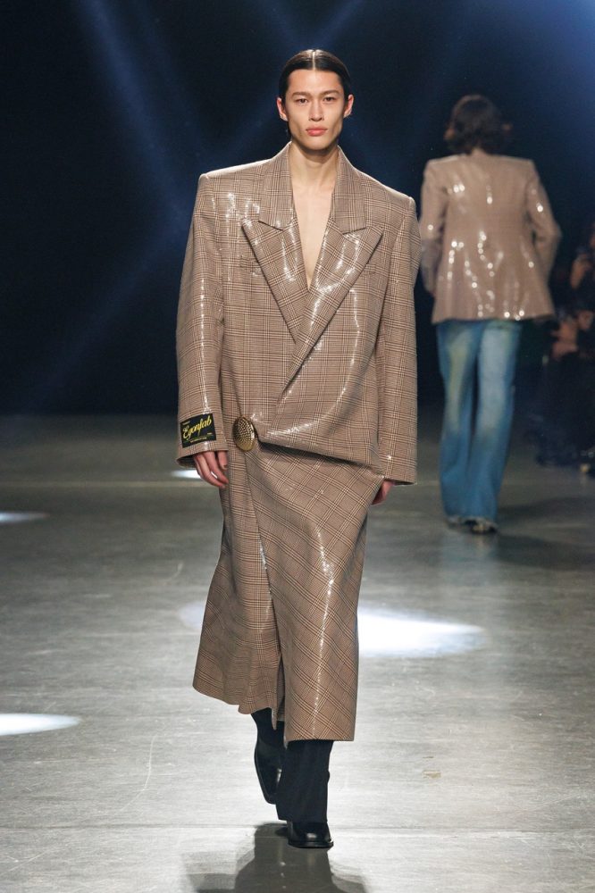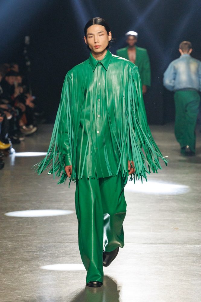 The ONLY LOVERS LEFT ALIVE collection is a manifesto on the power of the body, both physically and psychic, to regenerate from traumas. It serves as a satire of a modern world where the normalization of our existence thrusts us into the eye of the storm. A true cry of hope, where each piece has been conceived and designed to embody the rebirth of an entire generation. Battered, exposed, the body has become the tool of representation for the new generation, an aesthetic accelerated by the pressure of the screen. In a highly personal exploration, our ninth collection takes shape around the obsessive sublimation of bodies and their overexposure. At the dawn of adolescence and the age of possibilities, we want to raise awareness about the contemporary pressure of appearance and the constant pursuit of imposed perfection. Filtered smiles, transformed bodies – these are tools for a world that judges and validates us. We denounce this injunction that wounds everybody and provide the weapons to resist. With an iconoclastic soul, each piece illustrates the obsession with bodily change, accelerated by the prism of social networks. A tailored urban punk spirit in the look and continuous cut fuels our approach for this collection. In this chapter, we crudely reveal the skin, visible lacerations for these invisible wounds. Time and color pass, but the pain remains within us – what can we do but resist? The combinations harmonize the silhouettes like a second skin; they take center stage this season and complement the main pieces of our wardrobe. We protect the bodies that bleed invisibly. Sequins adorn the costumes of light; each piece is conceived in a signature tailoring spirit that plays with forms. Bottoms are loose, tops are fitted – a contrast to show the dysmorphias and heal them. Fringes adorn our leathers that play on the green of hope. Denim is dyed with rust and blue, torn, lacerated. Fragile but beautiful bodies are celebrated, unveiled, sublimated. The diversity of this ultra-visible generation is claimed in the roundness of forms and in attitude. As a nod, the EGONLAB label – 100% HUMAN – reminds us of where we come from. Beyond the body, we take care of the mind. EGONLAB now commits to mental health through a partnership with the organization PSYCOM to raise awareness about the care of the mind. Human before anything else. For the FW24 COLLECTION, EGONLAB is proud to champion self-care and advocate for personal protection. Through a strategic partnership with UGG and their groundbreaking UGGextreme™ line, EGONLAB elevates this commitment to unprecedented levels, pushing beyond traditional boundaries. The collection not only encapsulates the essence of self-care but also artfully integrates cutting-edge elements from the UGGextreme™ line, heightening the physical dimension of the self-protection message.In this collaboration, the focus was on employing molded leather in tandem with traditional resin, creating a meticulously crafted blend. The choice of molded leather introduces a distinctive touch, infusing the collaborative project with a unique and sophisticated aesthetic. The addition of resin enhances its luminosity and brilliance. This departure from conventional materials underscores the innovative spirit driving the partnership, resulting in a product that seamlessly blends artistry with functionality.