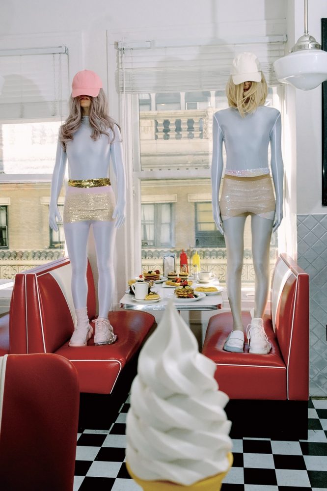 Tokyo cult-favorite sneaker and shoe brand grounds presents its new campaign for the upcoming PRE-FALL ‘24 collection titled, ‘Dessert’, and photographed by Katy Shayne. The series of impish photos star Elena Gatsenko and Yvana Han and is shot against the backdrop of a classic Americana diner in Los Angeles. The two models are photographed indulging in an array of desserts and candies, while wearing the new grounds collection. As sweet as the it can seem, the look book suggests the items styling with a rather spicy touch, adding hints of sensual and mature attitude approaching this theme.