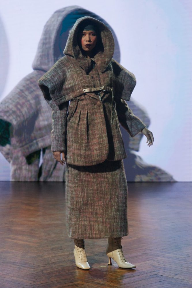 The timelessness goes through this collection, the designer mixed textures, shapes and colors adding new silhouettes meantime recycling items from the previous FW23 collection. Jarel plays between past, present and future in his artistic direction but also through his looks.