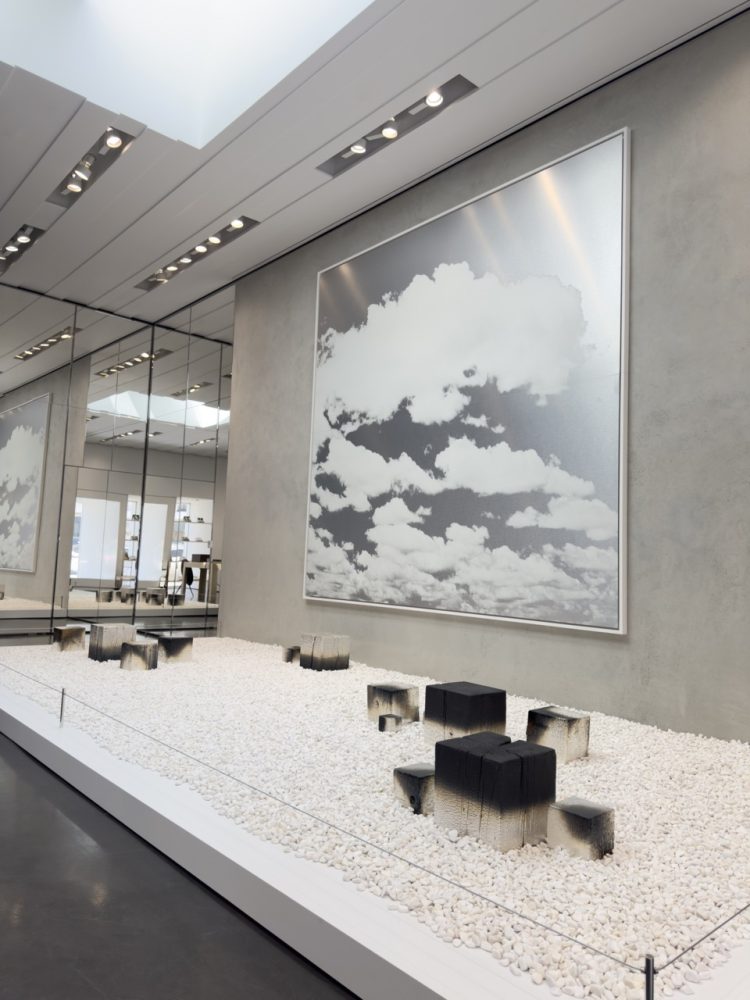 The show highlights steel, redwood, and washi paper—each one more chic and loaded with meaning than the last. She carbonizes redwood using shou-sugi-ban (the traditional technique where fire meets wood in the most couture way possible), and silver nitrate becomes her time-freezes moments and supports in catching the sparkle of a moonbeam or the hush of falling clouds.