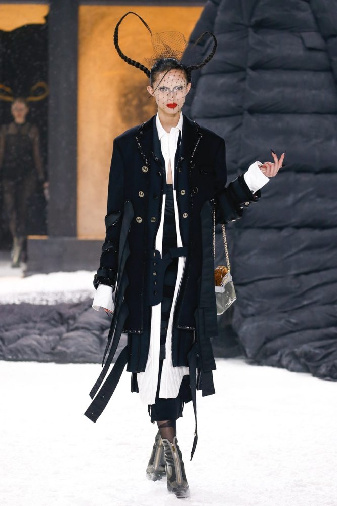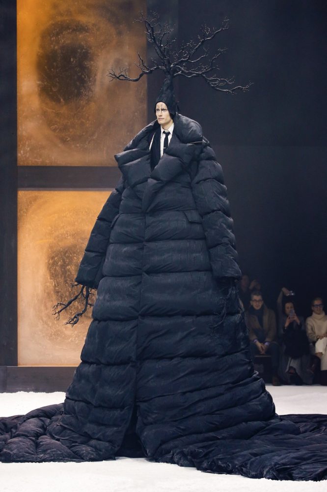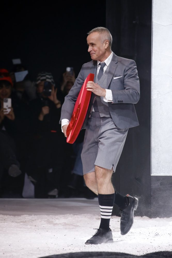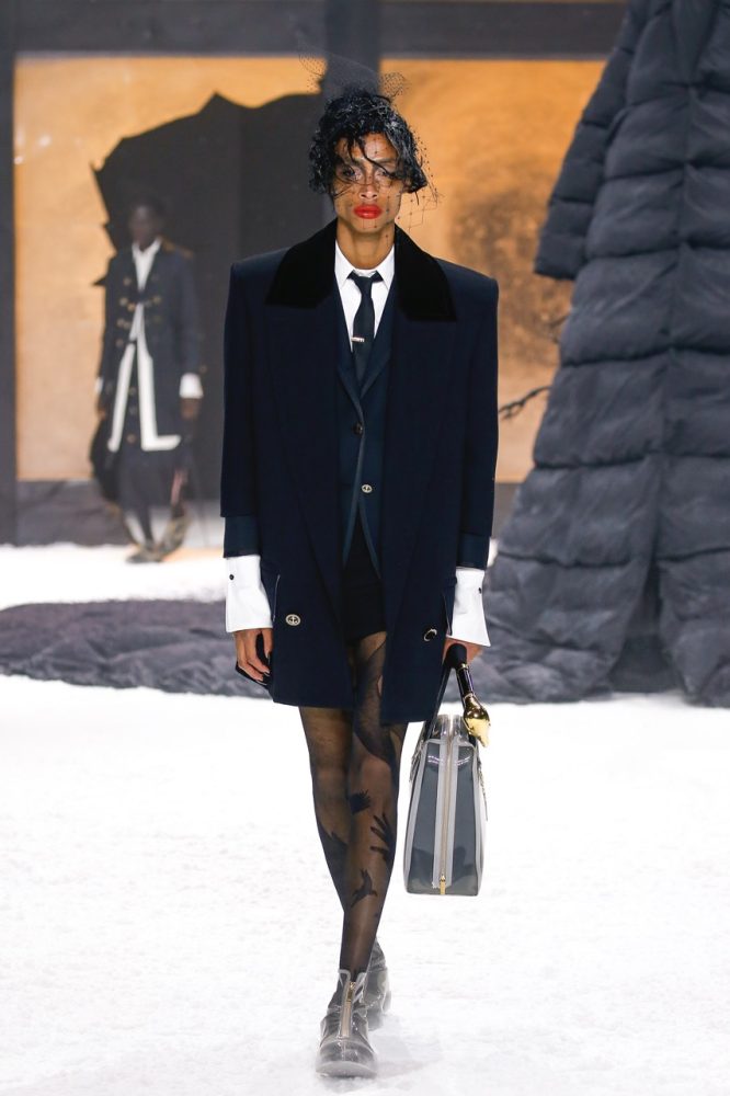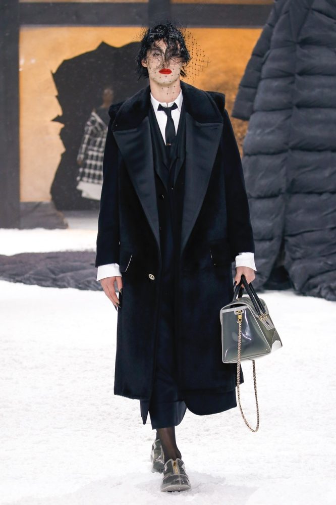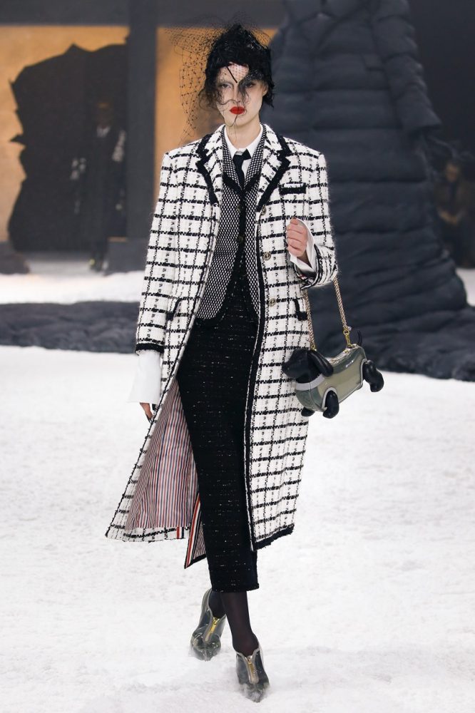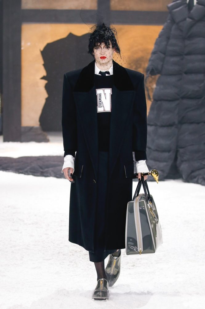 the thom browne fall 2024 women’s and men’s collection was brought to life by a special retelling of edgar allan poe’s the raven, narrated by american actor carrie coon.