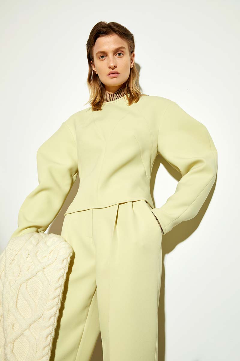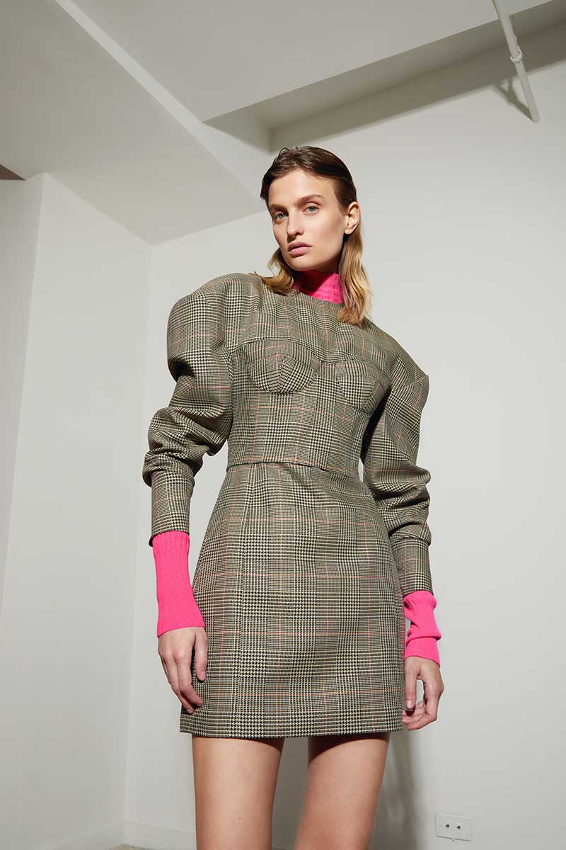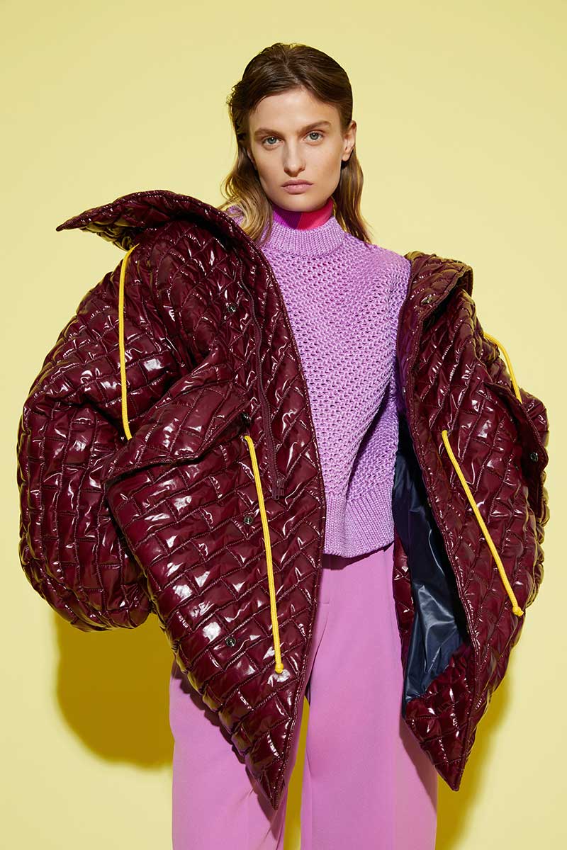 https://aknvas.com/The fall winter 2021 AKNVAS collection is created from a lens, which is looking at a world, in which we are all seeking comfort and safety. Creative Director Christian Juul Nielsen’s inspiration journey took him to revisit his roots while living in Paris and Copenhagen. The results are couture-inspired corset details, mixed with comfortable oversized sweatshirts, and square shapes of LEGO-inspired geometric patterns and zig zags. We are in a world where everything is becoming more and more contrasted, so the idea of playing with silhouettes and shapes is fascinating. Body conscious ribbed dresses placed against oversized coats is a respite from daily life in a world of lockdown and social distancing. We wish for couture but have an ethereal need for comfort. The collection features an extended knitwear collection, including: body conscious strappy tops, nylon ribbon knitted sweaters, oversized cropped woolen cable knit sweaters and tight little neon pink cashmere tops. Keywords for the collection include: unisex silhouettes mixed with super masculine and ultra feminine detailing, drawstrings, corsets, Japanese nylons, pajamas stripes and covered buttons.Founder and Creative Director : CHRISTIAN JUUL NIELSEN Model : VERONIKA VILIM Lookbook Photographer : MARC RICHARD TOUSIGNANT Video Director and Art Director : CYRIL GUYOT Film Director of photography : GEOFFREY TAYLOR Hair and Make-up : CECILIA ROMERO Press relations: AGENTRY PR