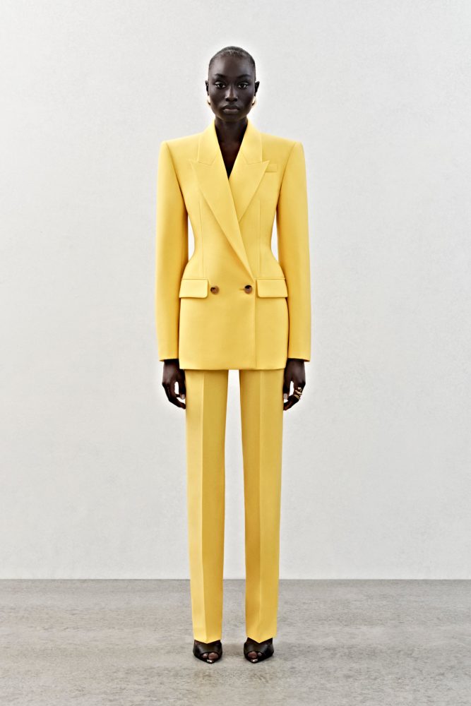 An exploration of beauty and power through tailoring and a focus on cut, proportion and silhouette. The classic subverted: wardrobe spliced and slashed. Uniform is re-imagined. Hyper nature. Solarized flowers appear alongside bright pinks, yellows and reds and elaborate crystal embroideries.