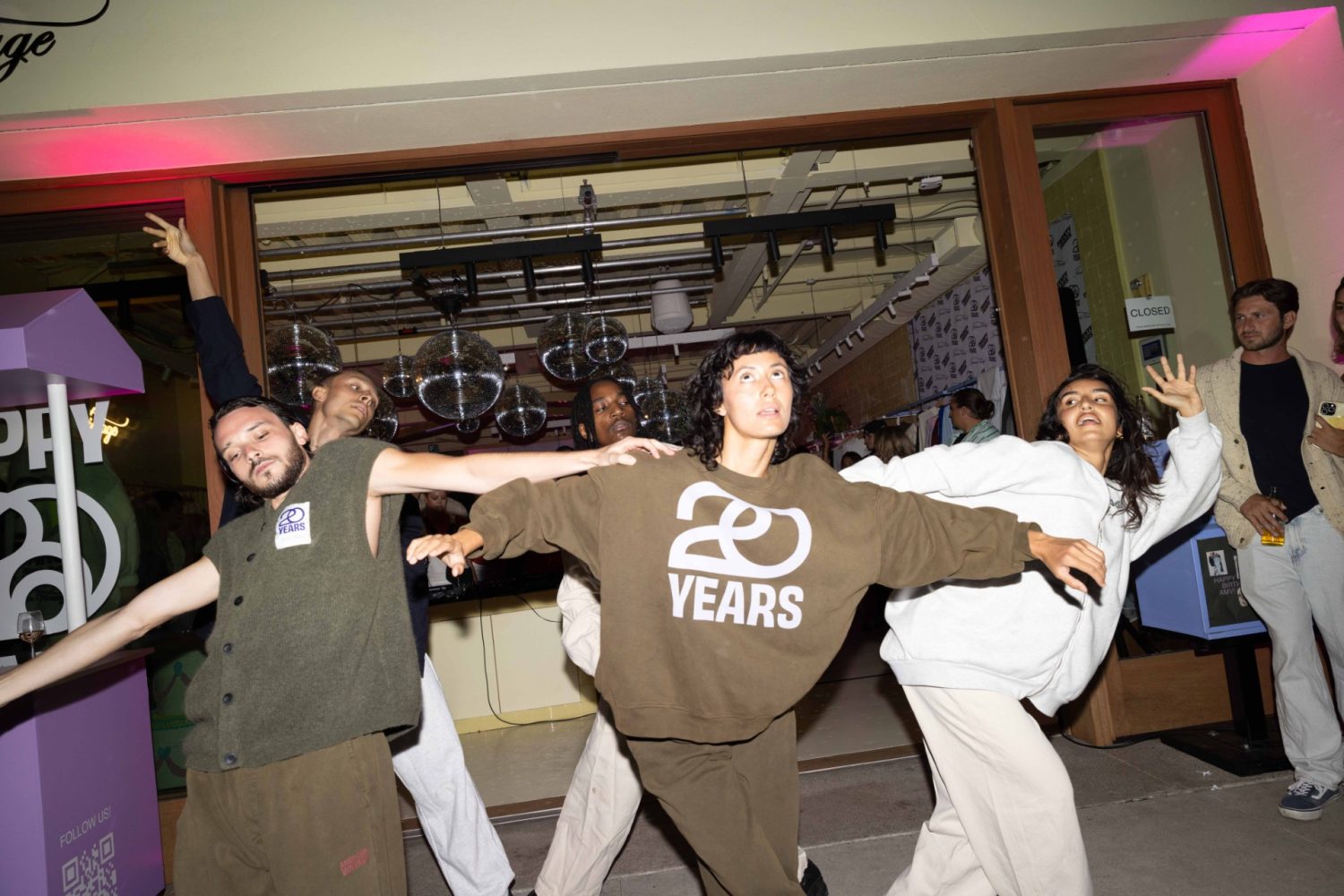AMV’s messaging goes beyond fit models performing a front-side-back rotation. For decades, the brand has communicated its authenticity through its editorials, emphasizing wearability by photographing real people going about their real lives. Taking this application one step further, the brand’s 20 year capsule collection debuted via dance troupe, exhibiting bold emblazoning across gently colored crew necks and the evident movability of their branded ecru denim. Onlookers sipped cocktails provided by LALO Tequila and Copalli Rum, and nibbled on the culinary manifestation of American Vintage’s international DNA: bites from bratwurst to poke were supplied by Create Hospitality. Twee & Izy spun tracks nightlong, fueling a festive reverie for LA’s style set. Influencer Rocky Barnes rubbed shoulders with Love Island’s Eyal Booker, all arriving to support this milestone for their favorite closet staple.