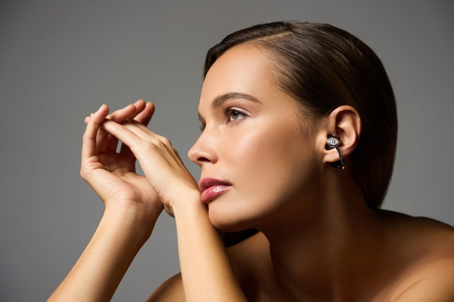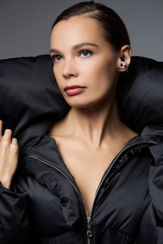 A fusion of fine jewelry and cutting-edge technology CAS&Kera launched the earKron Diamond Edition, the third iteration of its REDDOT award-winning series. This exquisite release redefines luxury with black zirconia ceramic ear cuffs enhanced by platinum accents and featuring 12 handset natural diamonds. Crafted with a base of 18K gold, the ear cuffs are plated with PT999 platinum, delivering unmatched elegance and sophistication.