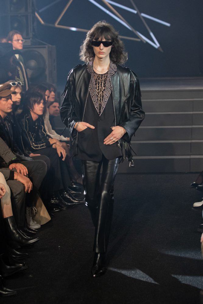 Hedi Slimane delves into today’s youth’s rediscovery of the 2000’s electroclash and electronic rock sounds and scenes, a movement appearing in major cities like Paris, London and New York. He pays tribute to new york’s cult proto-punk band suicide formed in 1977 by alan vega and martin rev, a band that in 2023 still intrigues and inspires the emerging music scenes.