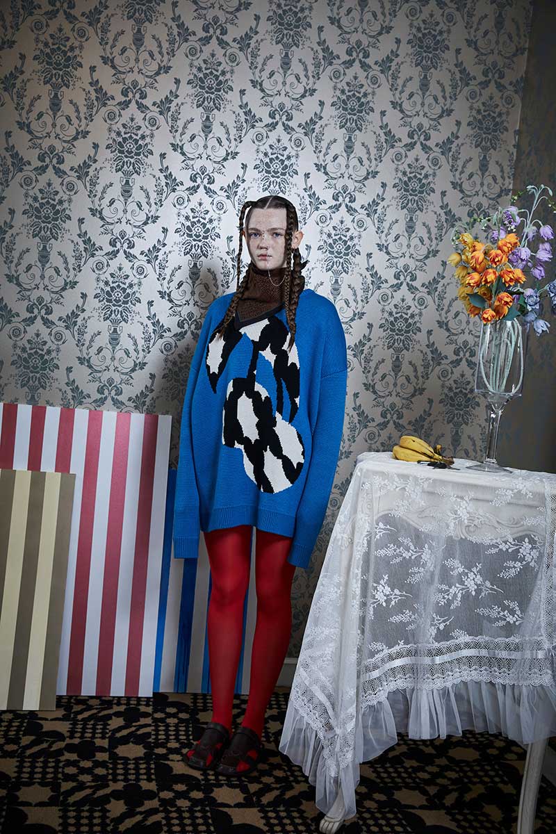 With its Fall/Winter 2021 Collection, Dirty Pineapple builds upon their signature odd and twisted gender-neutral lounge suits and expressive basics with denim, vegan leathers, cashmere and wools. Seasonal prints and graphics take inspiration from street elements of local Shanghai scenes: manipulated prints of the “étalages” of the fruit store, flowers resembling wallpaper, while stripes evoke classic resort wear.