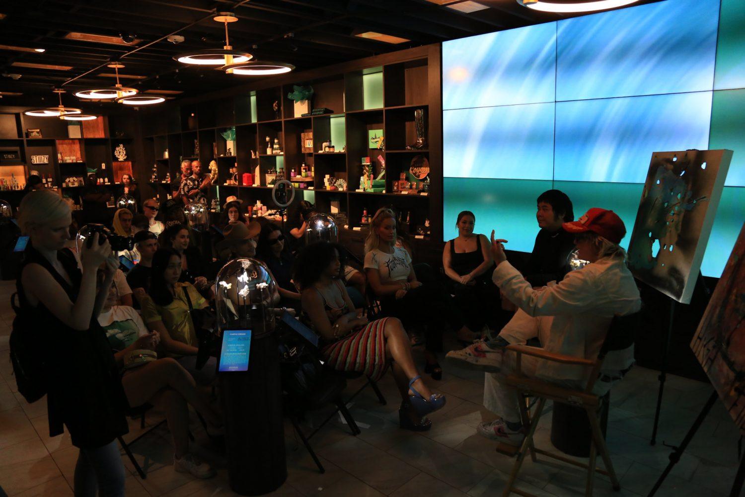 As the month of June rounds out another massively successful Pride celebration, luxury Cannabis boutique HerbNJoy hosted a conversation with Strike Oil Creative Director, artist, philanthropist, and activist Nats Getty in discussion with Reserved Magazine. The evening’s chat covered the rich local tradition of seaside skate and surf weed culture and how it informed various defining moments for Getty’s rebellious youth. From this punk forward visual language the designer and creative has grown a loyal customer which extends into the world of media, having dressed Machine Gun Kelly, Lil Huddy, Iann Dior, as well as the Oscar nominated Kodi Smit-Mcphee. The conversation pivoted to speak on the current social climate surrounding LGBTQIA+ youth and the chosen family dynamic that has been cultivated among the room of queer creatives allies and fems. A serious point of dialogue focused on the varying ways which Nats and his wife social media personality and model Gigi Gorgeous had seen various injustices that they still struggle with on the daily. The tone shifted deeper into serious matters when discussing and acknowledging that in this room full of love, support, and spirit that most were fortunate to have surrounding reality of most trans youth. An overall impactful night which saw the progression and reflection of where the queer community is going. Proceeds of sales from the evening went to support GLAAD.