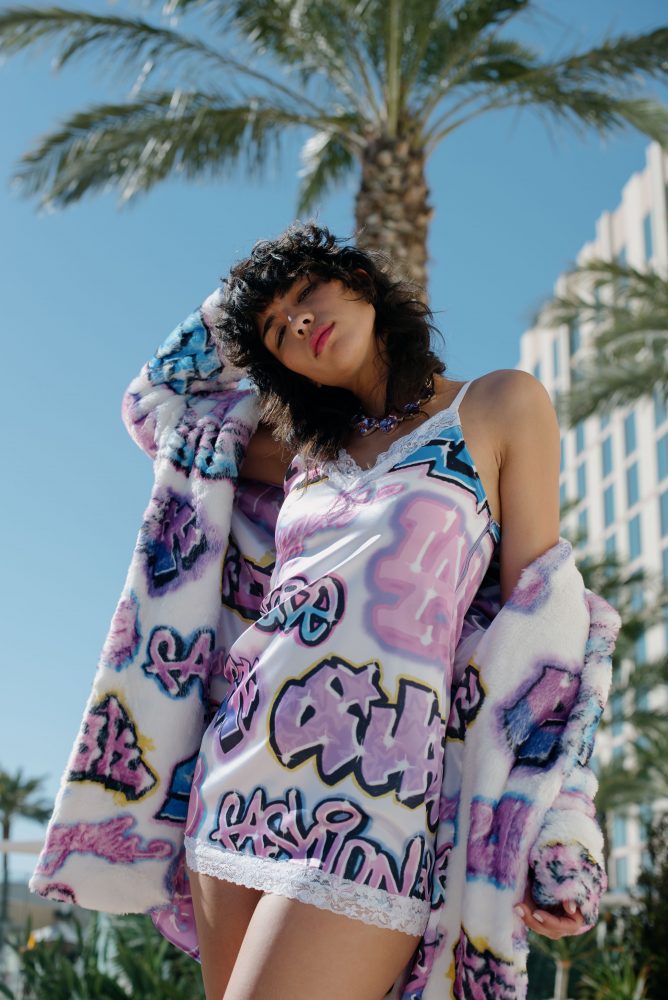Literal art. Throughout Freak City’s runway I was gagged by the attitude and blinded by the looks. My neck snapped watching the models whip their hair! Freak City LA bby! The exotic neon coloured gowns, graffiti tagged streetwear, pink REAL & FAKE tracksuit gave fantasy, but was and is a reality. Love that.