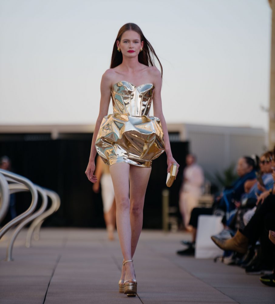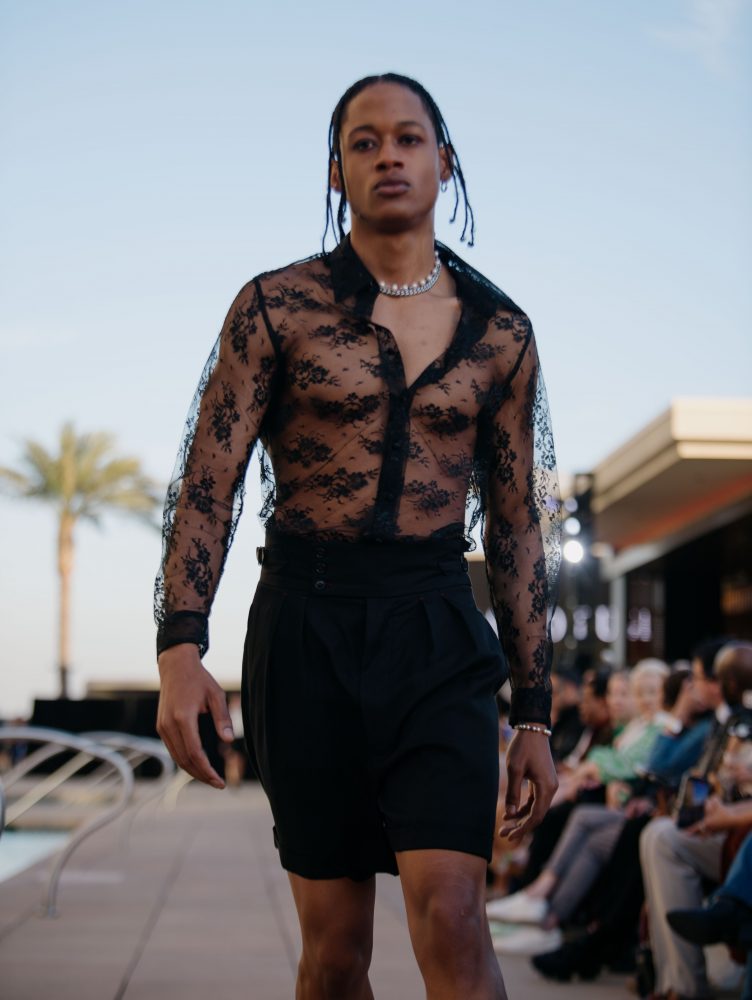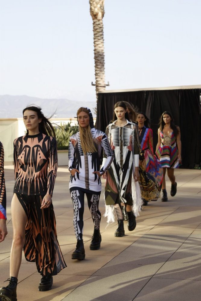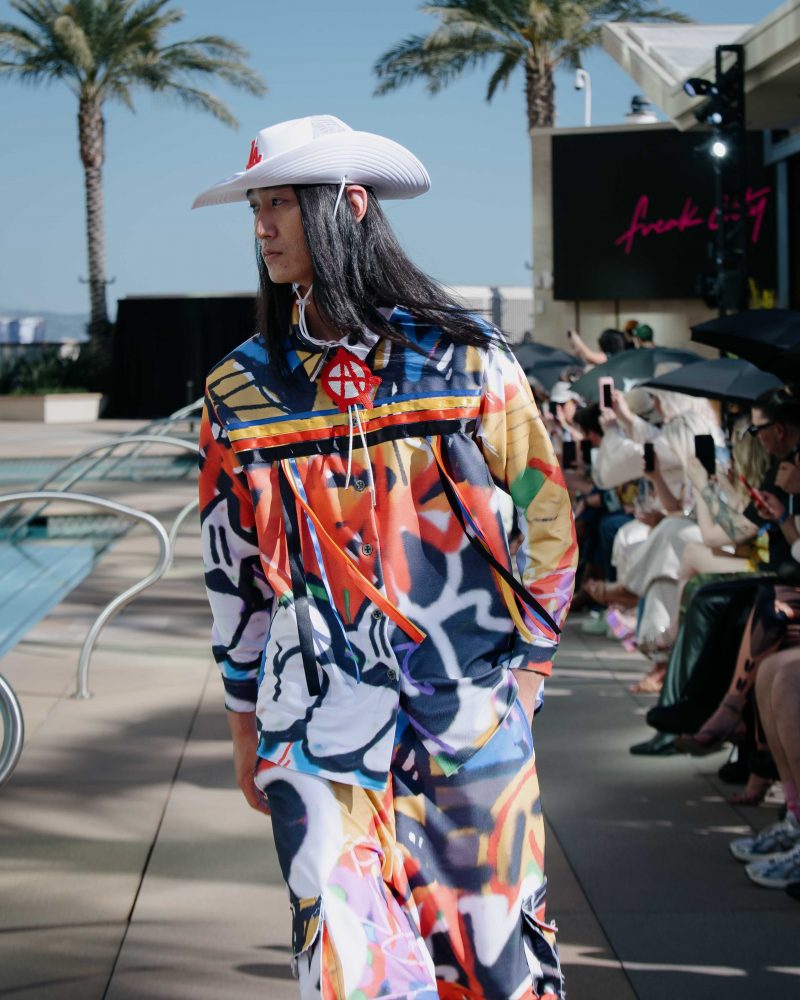 Produced by fashion publicist, bestselling author and TV personality Kelly Cutrone, the event featured a runway show by Jamie Okuma, the first Native American designer to be admitted to the Council of Fashion Designers of America, alongside shows from Indigenous creators Jennifer Younger, Orlando Dugi and Section35, Freak City L.A., and others also showcased collections, with models walking around the resort pool and guests seated on either side.