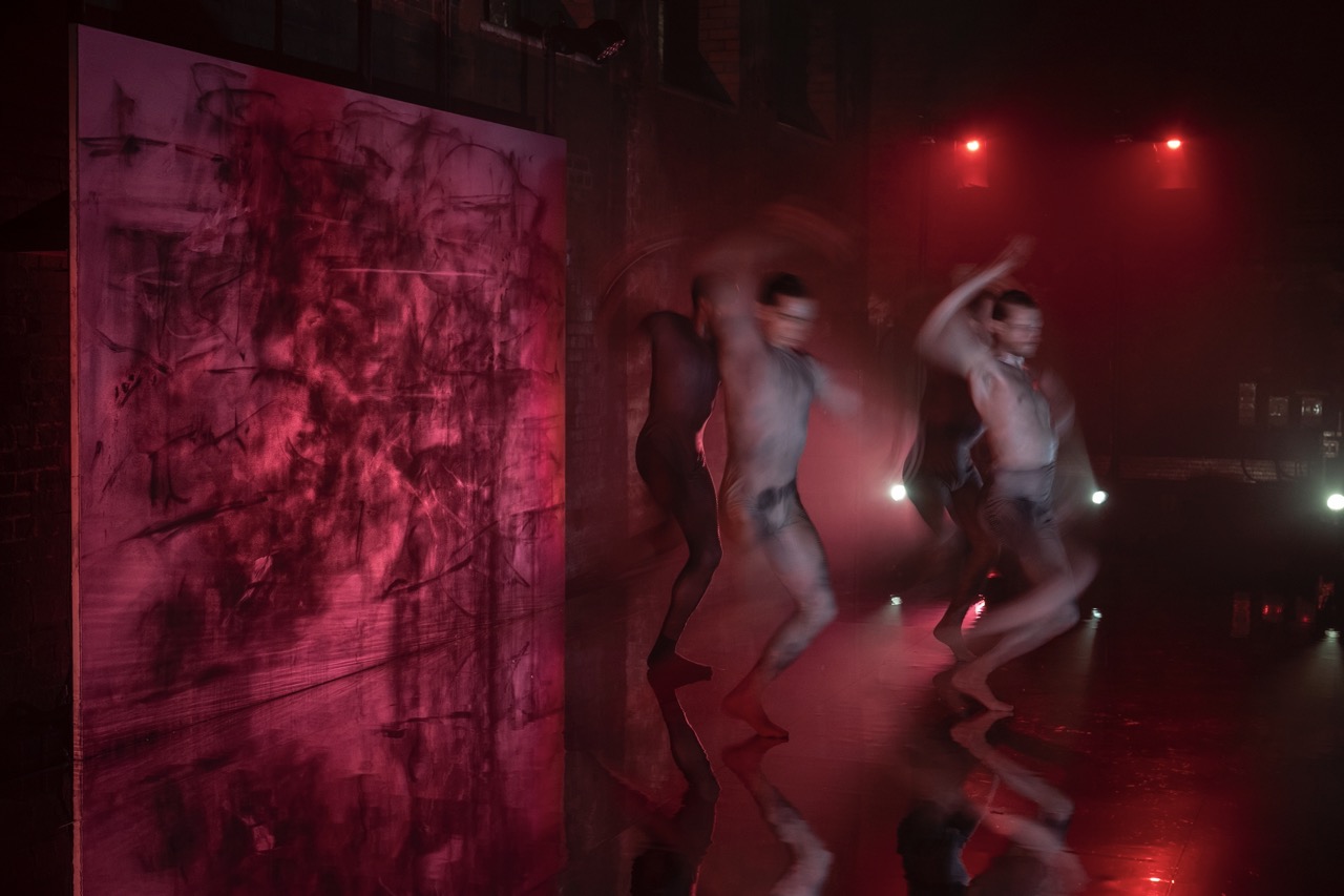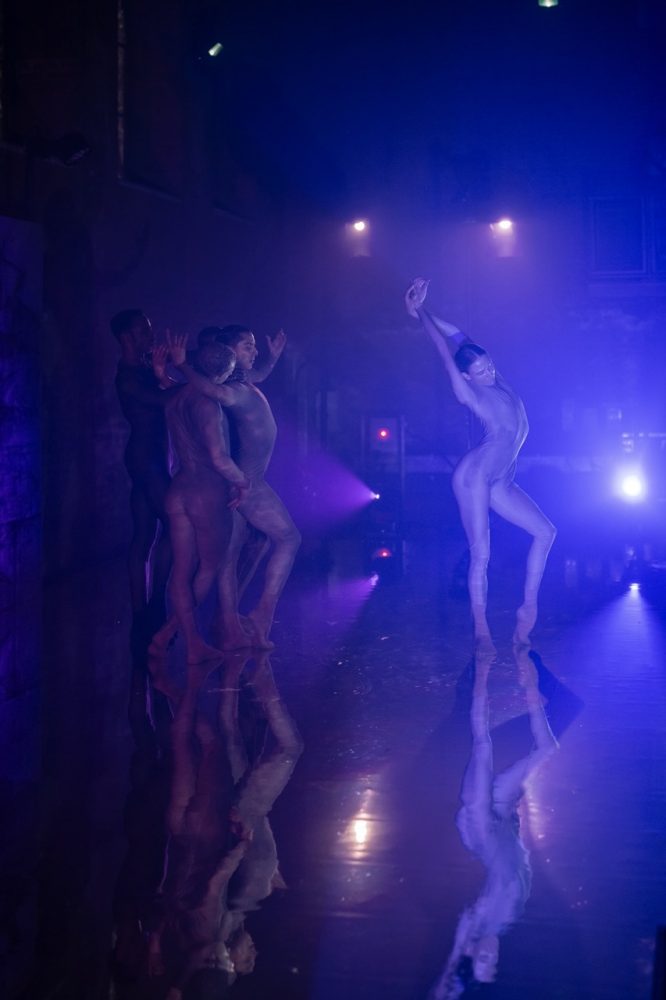 The performance unfolds on a mirrored dance floor, reflecting both the performers and audience, furthering Rouy’s themes of distortion and transformation. Dynamic lighting systems amplify the mood, oscillating between austerity and crisis, while costumes designed by British fashion house 16Arlington, in collaboration with Rouy, embody the tension between constraint and fluidity.