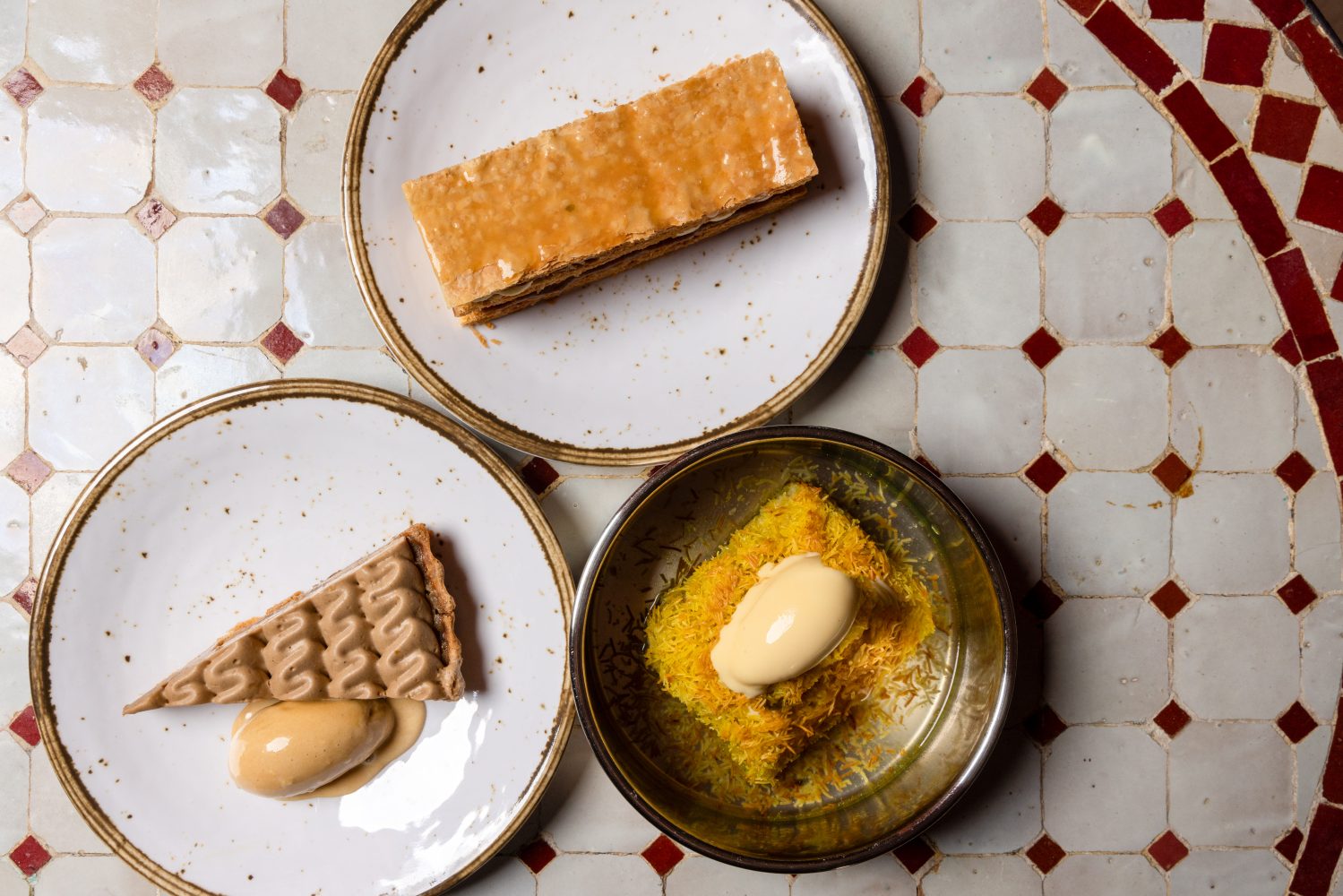 Splendor surpasses the kitchen, as the rich beverage program seamlessly sews a journey to the deserts of Jordan. We imbibe the Mata Hari Milk Punch, pitched by our server as “exactly what I’d want to be wearing as I slipped between silk sheets in a feathered robe”. Much like the decor and the offerings, Layla’s staff makes you feel more welcome than if you were sitting at your own dining room table. They needn’t say more and I could not have put it more eloquently. If you’re having trouble assigning a taste to this sumptuous sensation, sidle up to the bar once you finish reading and discover for yourself. Nevermind the opulent presentation of each concoction (though, do mind it. The Layla cocktail program is specifically stunning in both flavor and form). Our second refreshment comes as a surprise and delight, a bubbling cherubic aperitif on the verge of glittering that appears as something I would have envisioned as a hyper-femme seven year old. To make matters more intriguing, the elegant flute is topped with an edible, sugared butterfly. This treasure is dubbed the French 95, a butterfly pea gin riff on the classic 75, topped with a balancing and zingy passion fruit foam. I’d be remiss to avoid mentioning the dessert, of which we inhaled two and could have taken down the entire menu. These particular standouts, though, included the sundae and the baklava, the former more tantalizing than any scoop I’d before encountered. Some magical mixture of cardamom, rose, and pistachio mingled on my tongue to create a sensation nearly indescribable within my vocabulary, but can best be described as the most intoxicating perfume, in the most complimentary way. Delicacies of the region converge in one tulip shaped, soda-fountain-style glass to envelop customers in the essence of the east.