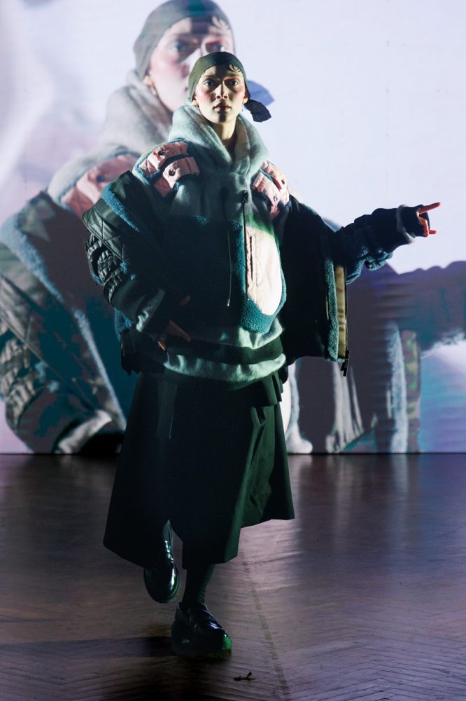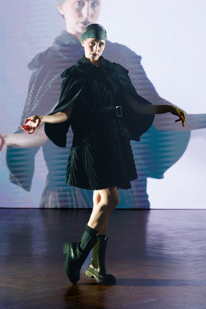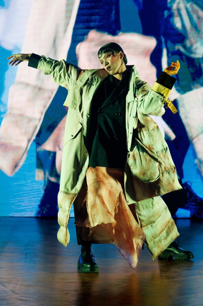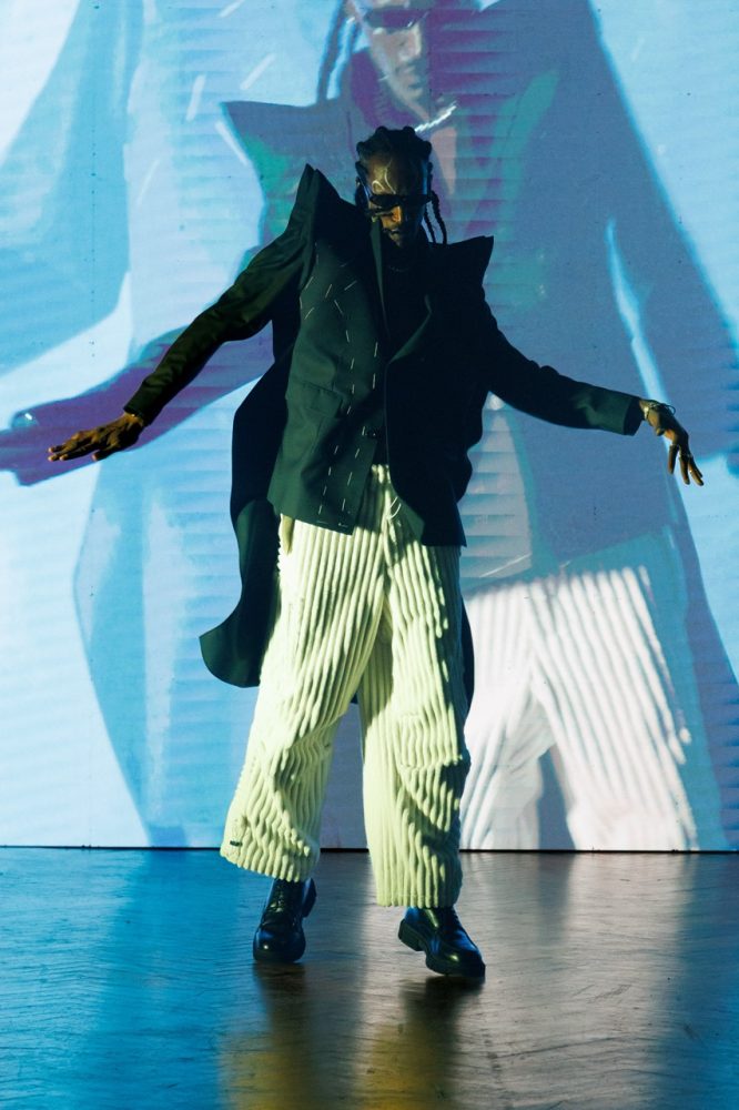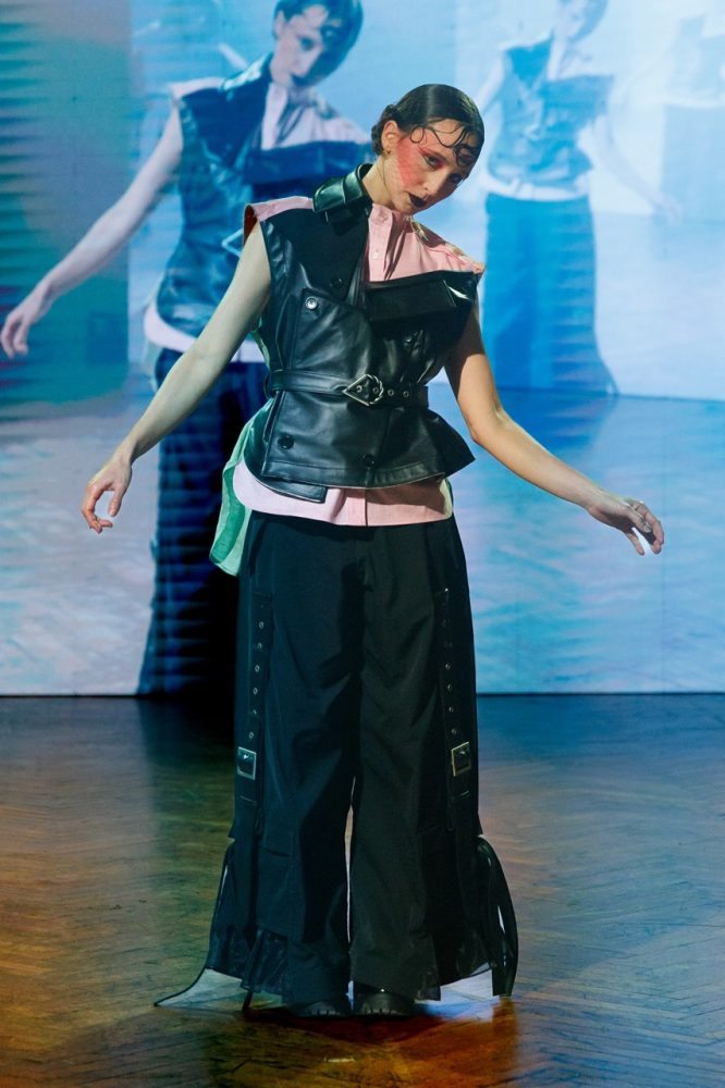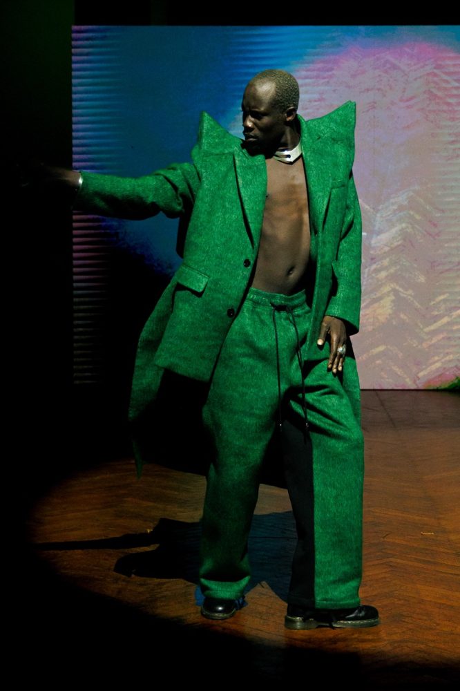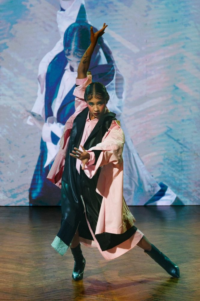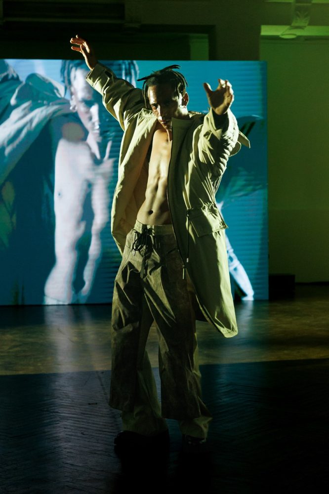 Following his passion for art and after having made the previous presentation surrounded by painters, for this FW24 collection, Jarel Zhang brings dancers on the stage as models.