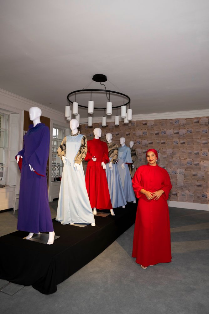 What was the inspiration behind it? My newest collection captures the journey of empowering oneself through intentional choice. Muted, ethereal tones reflect inward purity and personal paradise attained when we invest fully in our dreams. This speaks to my own pivot from teaching to fashion design. I stepped into confidence by elevating my creativity into wearable self-expression of identity and values. It celebrates the modern faithful woman’s devotion to self-investment as her most prized treasure. The modest silhouettes and delicate fabrics allow her inner light to shine while maintaining her values. The pieces offer both beauty and function for her daily life. Clean lines symbolically represent grace attained by taking risks to pursue one’s calling. Subtle motifs nod to the concept of ascending confidence through knowing and owning one’s worth.