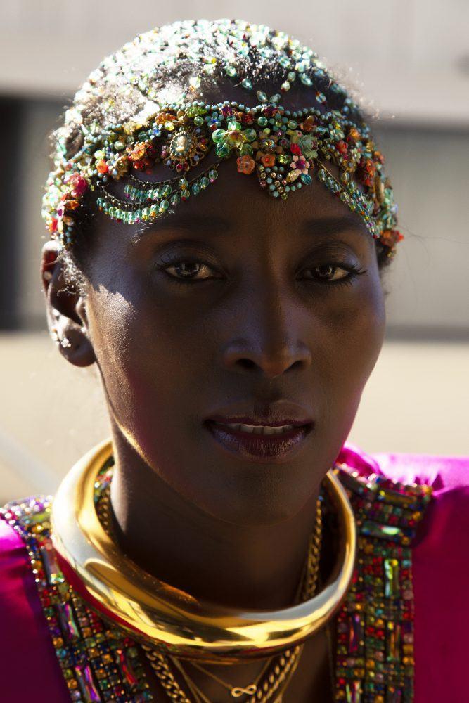 Clothing, hat and jewelry by Khadija Neumann. Shoes by Tom Ford.