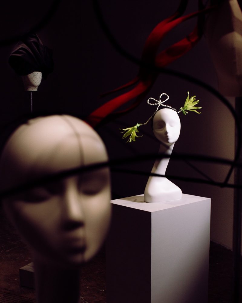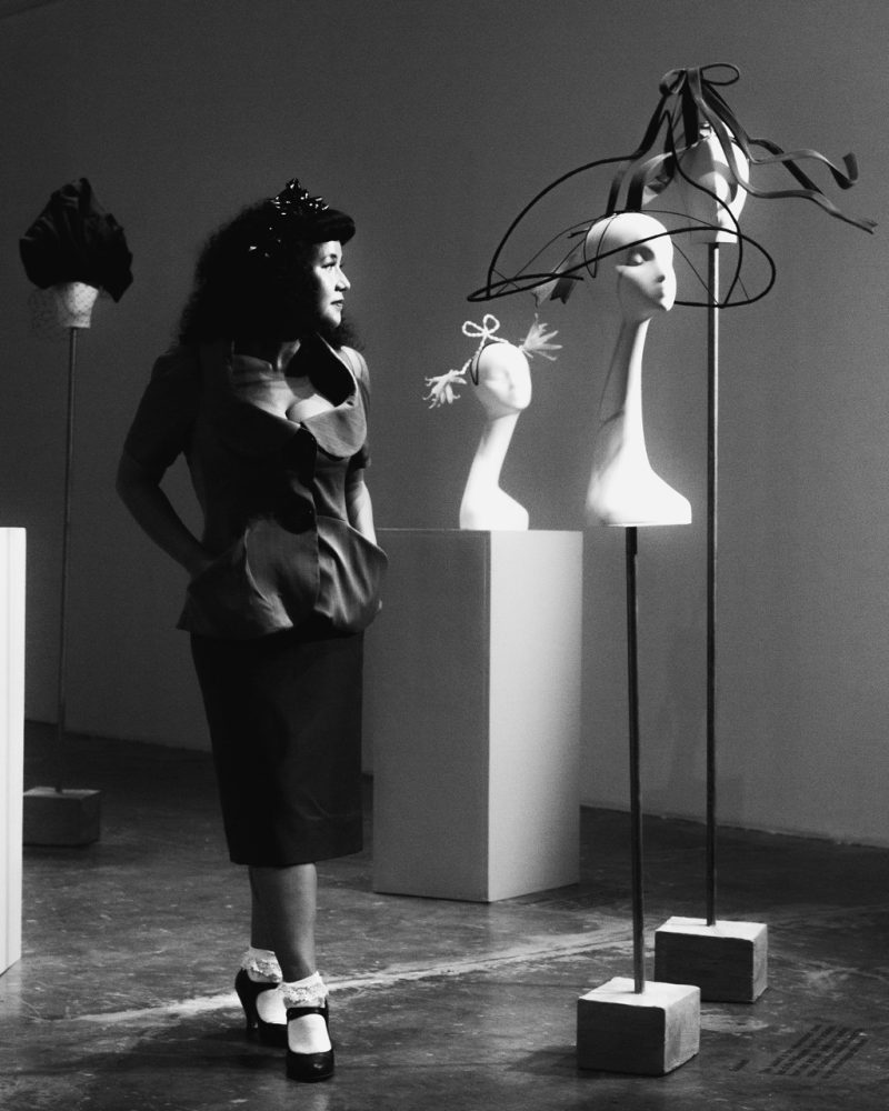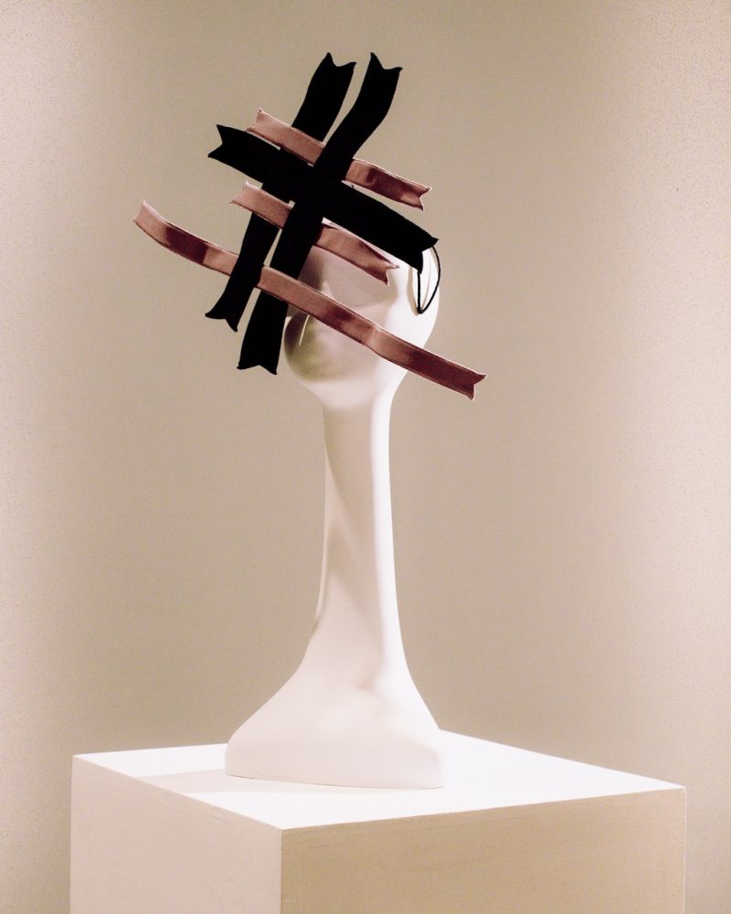 Mich Dulce’s work originates in autobiography, but inevitably the self resists containment; it fractures, disperses, and becomes porous. What begins as introspection inevitably unravels into a confrontation with inherited scripts; colonial legacies that still choreograph the body, the gaze, the self, and even the very hand that crafts. Having trained with the Queen’s milliner and refined her practice at Maison Michel Paris, Dulce absorbed the exacting grammar of European haute millinery, a lineage consecrated in the canon of craft histories.