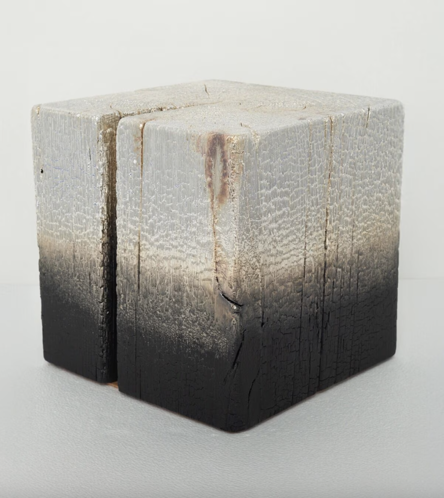 - Miya Ando, January 9 2021 Matsu Pine Shou Sugi Ban Silver. 2021. Reclaimed Charred Pine, Silver Nitrate 11 x 11 x 11 in (27.94 x 27.94 x 27.94 cm).