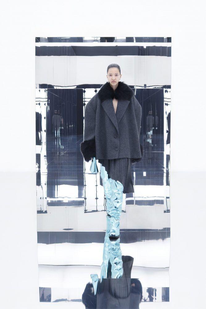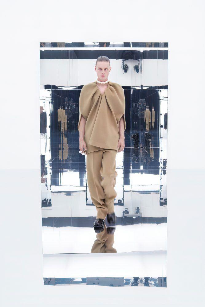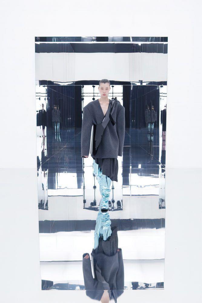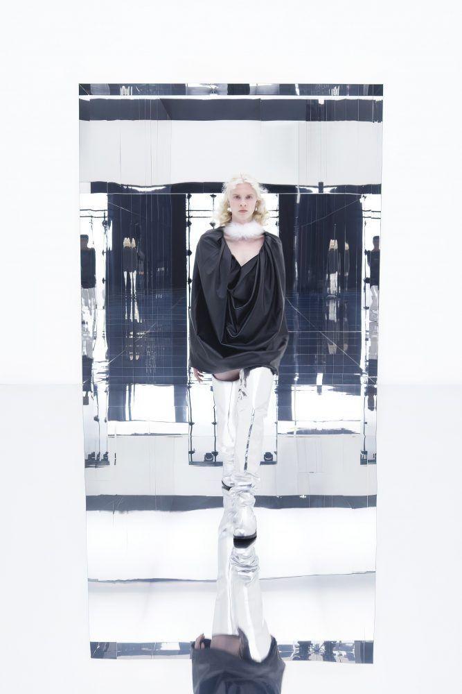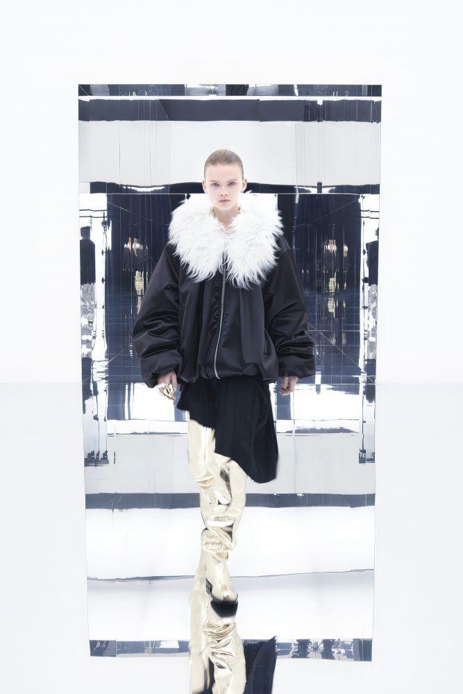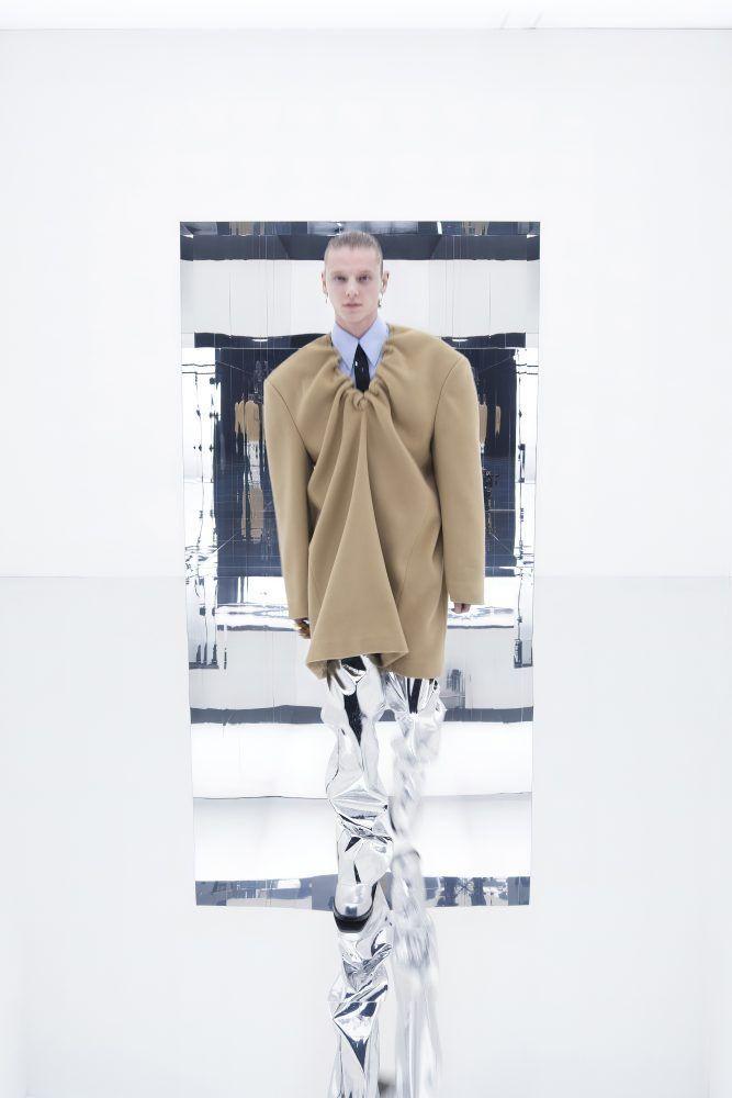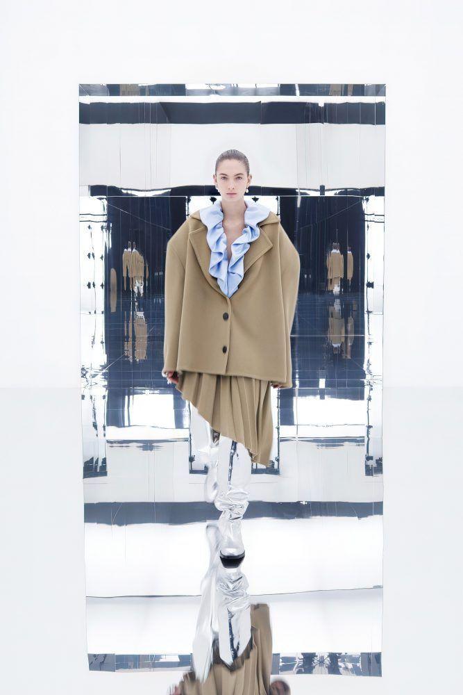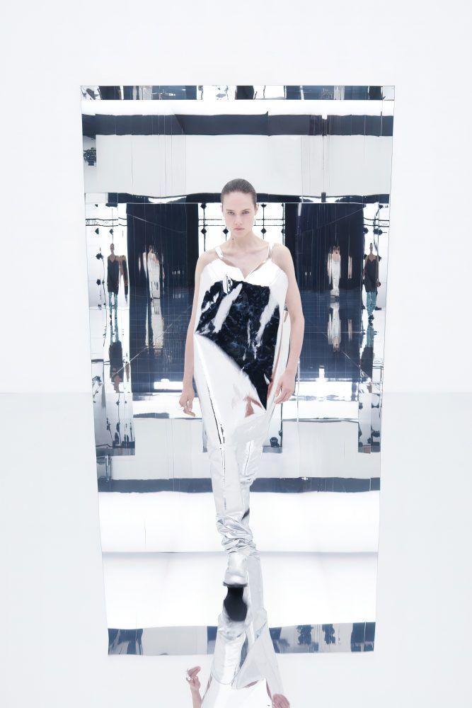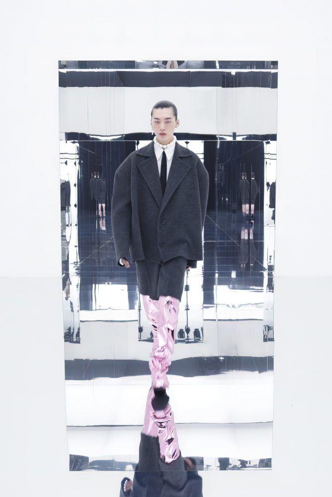 It’s hard to pick out a favorite from the selection of the Korean based brand We11done. Mirrored Metallic Mania Matched with Matte flannels has come to excite to the point of alliteration. The contrasting textures do not come off abrasive or jarring but rather complementary. Sharp minimalist tailoring in oversized shapes is soften by an array of simple pearl jewelry and delicate draping which references renaissance garment constructions. The punctuations of the heavy metallic boots will be a great item to see worn in the fall by the art set from the gallery opening, to the dinner to the afterparty.