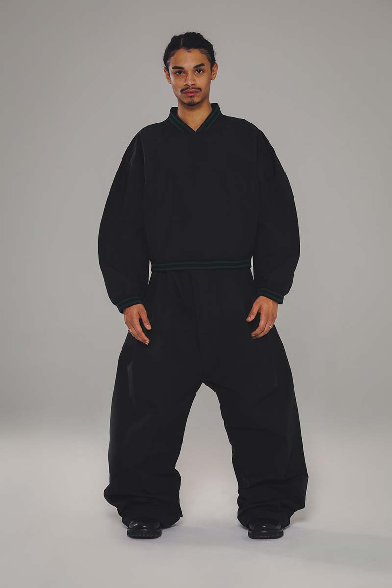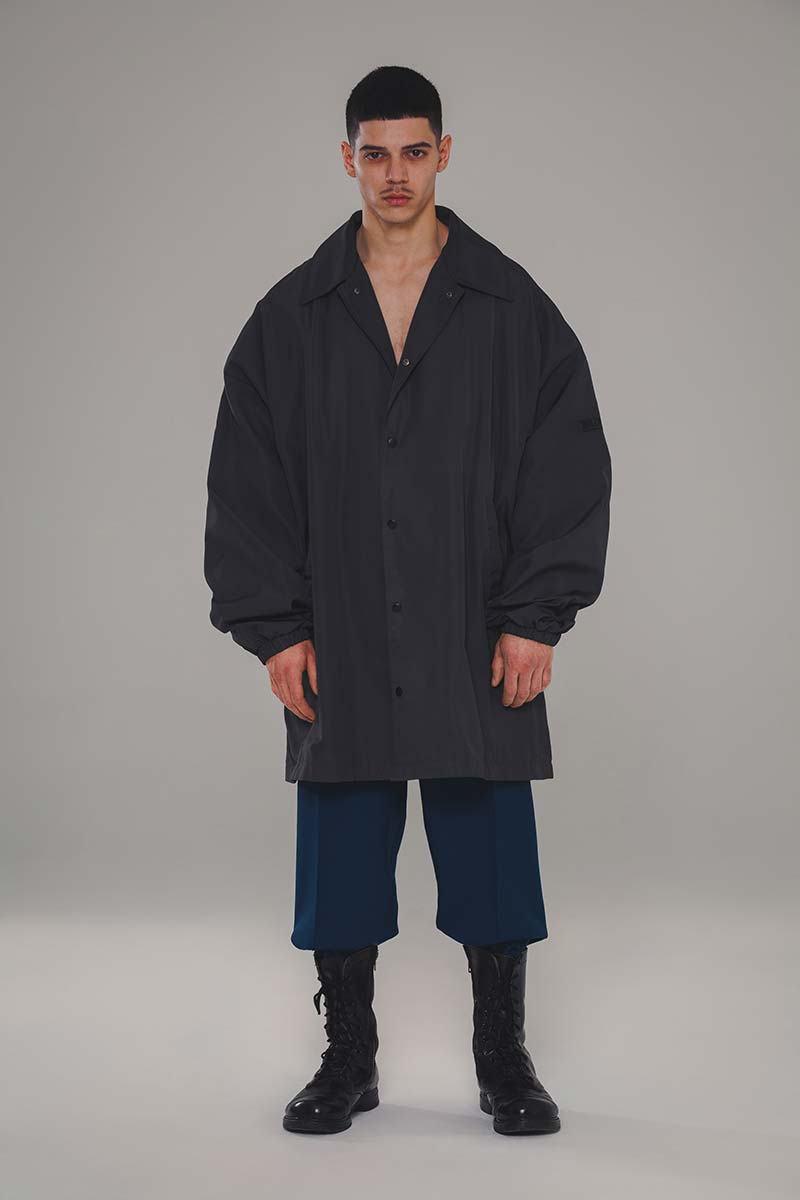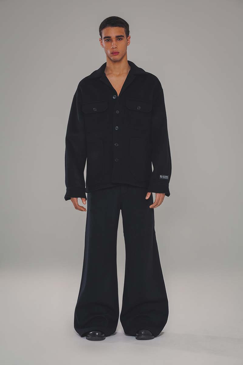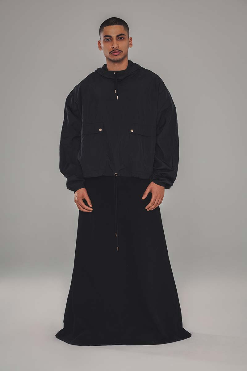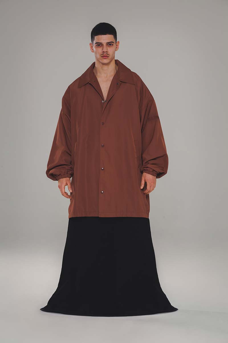 This is a story of elegance and endurance; the core elements of what WILLY CHAVARRIA designs. A call to simplicity. Clothing with a feeling of warmth and protection. The colors of New York are seen throughout the collection. Deep blacks, piercing blue reflections off glass skyscrapers, and burnt orange sunsets. Silhouette and drape are thoughtfully mastered in each style with extreme shapes that project confidence in walking the streets. WILLY continues his relationship with Peruvian manufacturing, utilizing wool, organic and recycled cottons, as well as weather-resistant materials made from recycled sea waste. Clothing that keeps us safe and makes us feel empowered. This is our story. New Yorkers who persevere.